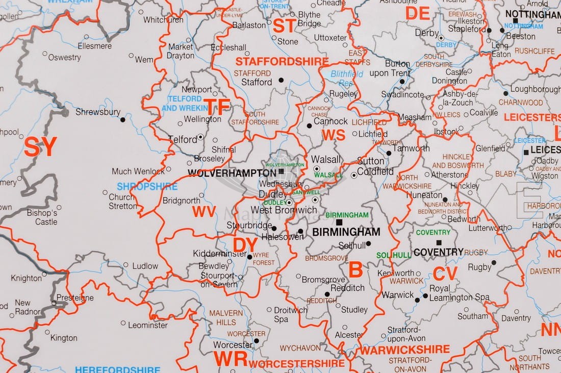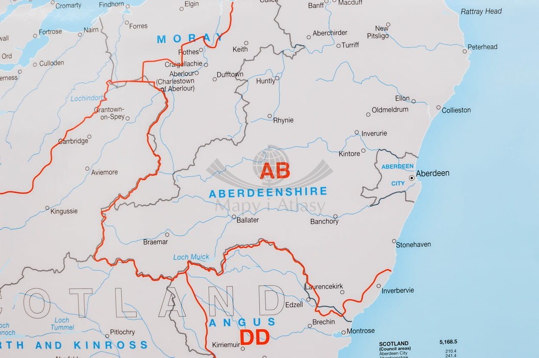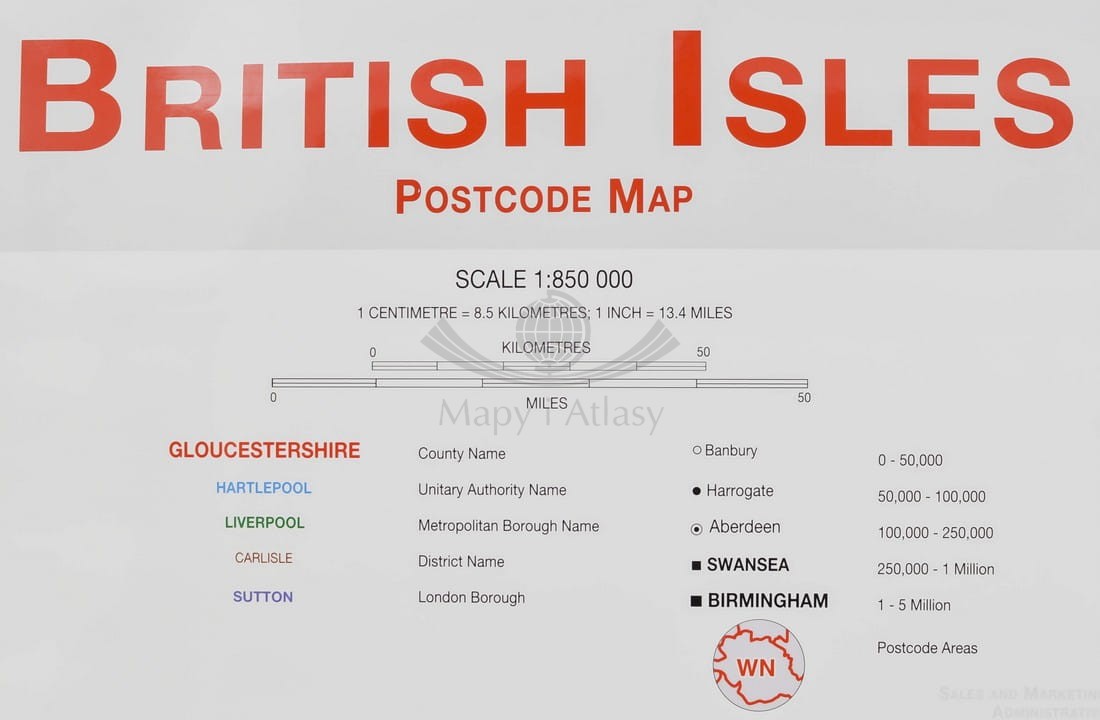 Wielka Brytania (Anglia, Szkocja, Irlandia, Walia). Mapa ścienna. Kody pocztowe. MI