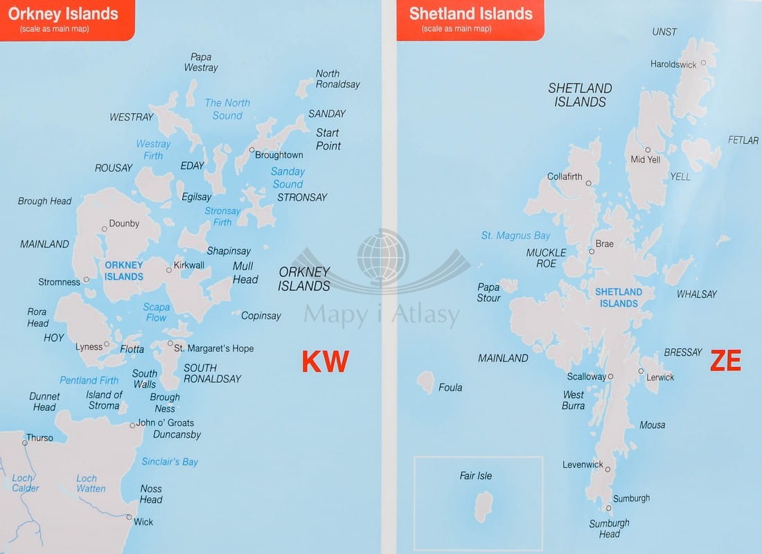 Kodowa mapa ścienna Wielkiej Brytanii w skali 1:850 000 wydawnictwa Maps International. Publikacja zawiera również kilka dodatkowych map: okolic Londynu w skali 1:260 000, Orkanów i Szetlandów (w skali 1:850 000)...