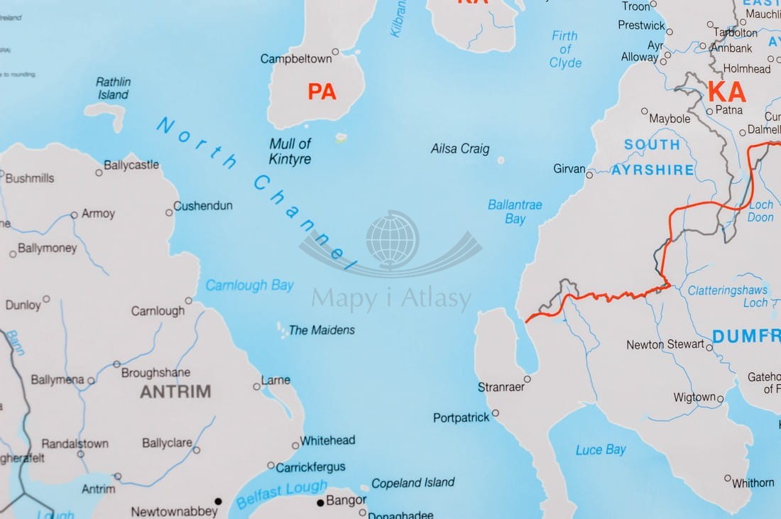 Kodowa mapa ścienna Wielkiej Brytanii w skali 1:850 000 wydawnictwa Maps International.