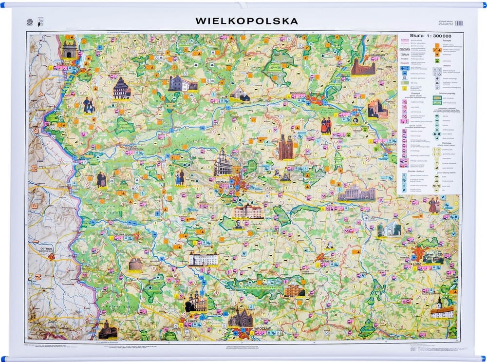 Dwustronna mapa ścienna Wielkopolski fizyczno-krajobrazowa w skali 1:300 000 wydawnictwa Nowa Era.
