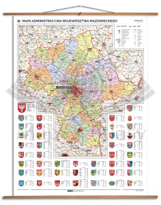 Województwo mazowieckie 1:215 000. Mapa ścienna administracyjna. Drewniane półwałki