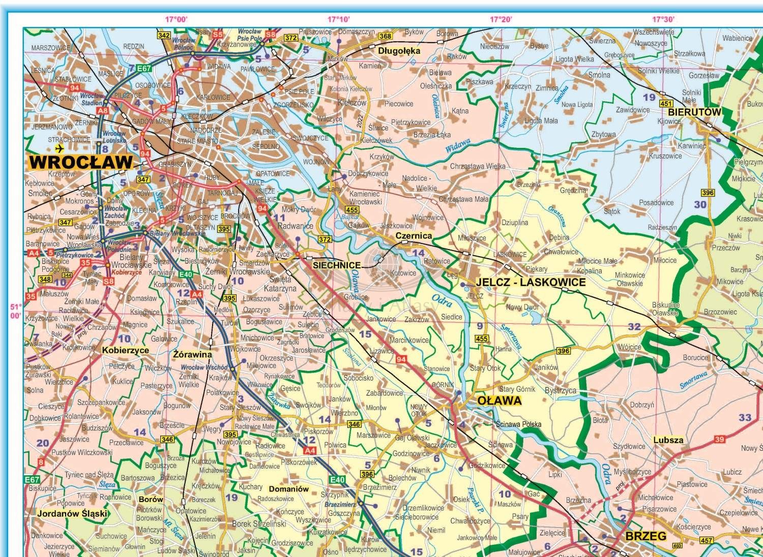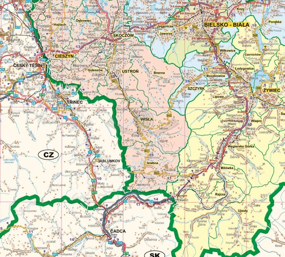 Województwo opolskie i śląskie 1:150 000. Mapa ścienna administracyjno-drogowa
