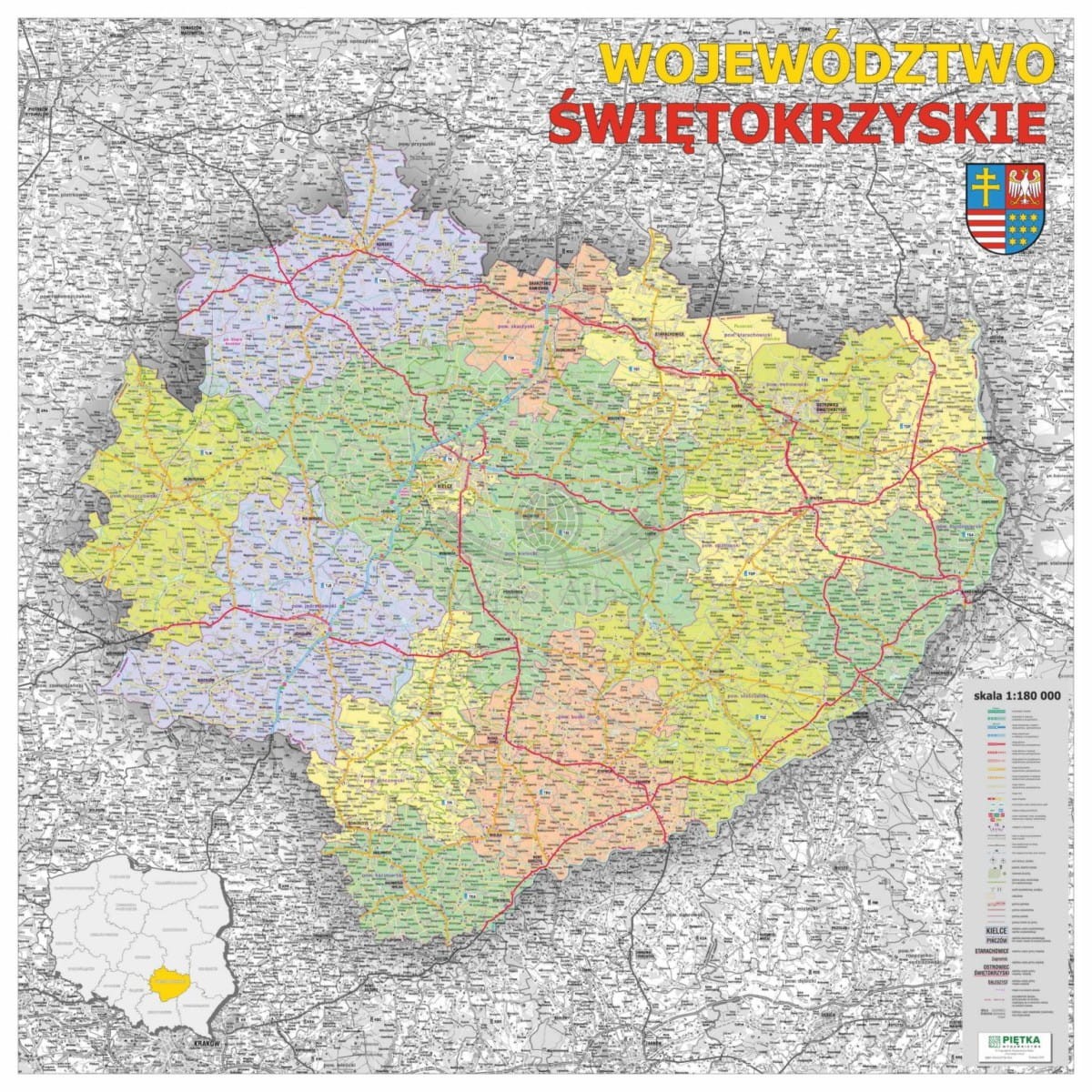 Województwo świętokrzyskie 1:180 000. Mapa ścienna administracyjno-drogowa. Wersja STRONG. Wyd. 2025