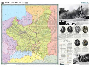 Wojna obronna Polski w 1939. Mapa ścienna 160 x 120 cm. Drewniane półwałki