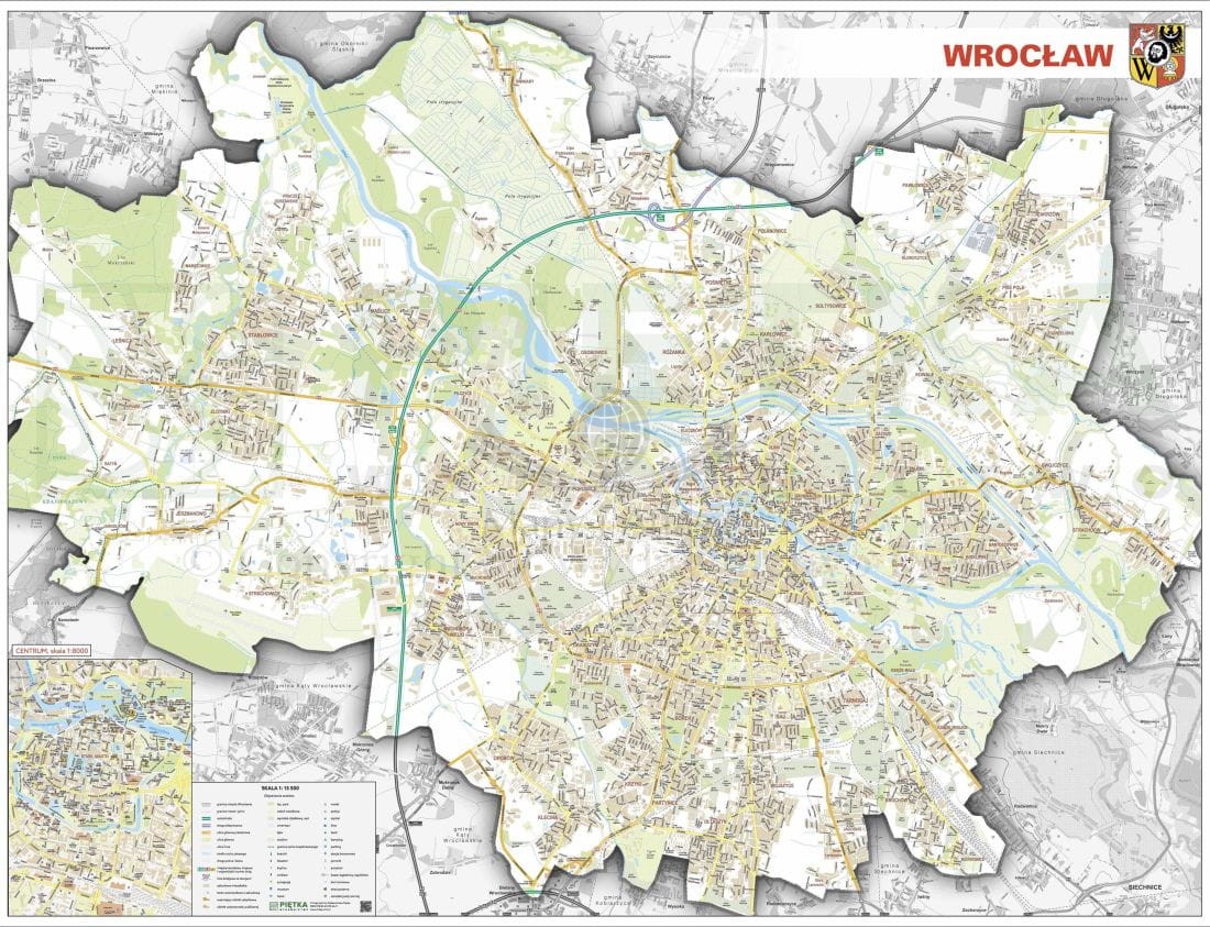 Ścienna mapa Wrocławia w skali 1:15 000.