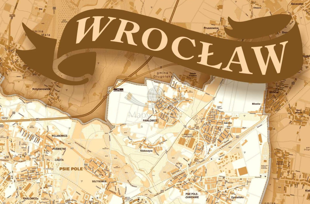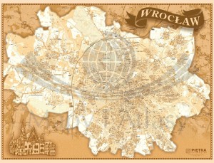 Stylizowana mapa ścienna Wrocławia.