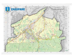 Ścienna mapa Zakopanego to propozycja zarówno dla mieszkańców jak i turystów, którzy odwiedzają to piękne miasto i planują swoją trasę. Odpowiednia kolorystyka i czytelne nazwy sprawiają, że mapa ta jest bardzo wygodna w użyciu. Mapa ta może być także bardzo praktycznym wyposażeniem urzędów, biur i szkół.