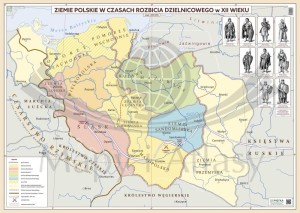 Ziemie Polskie w czasach rozbicia dzielnicowego w XII wieku. Mapa ścienna. Wersja STRONG