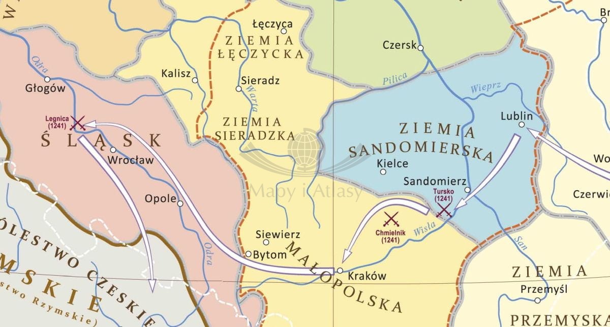 - najazd tatarski w 1241 r. i ważniejsze bitwy.