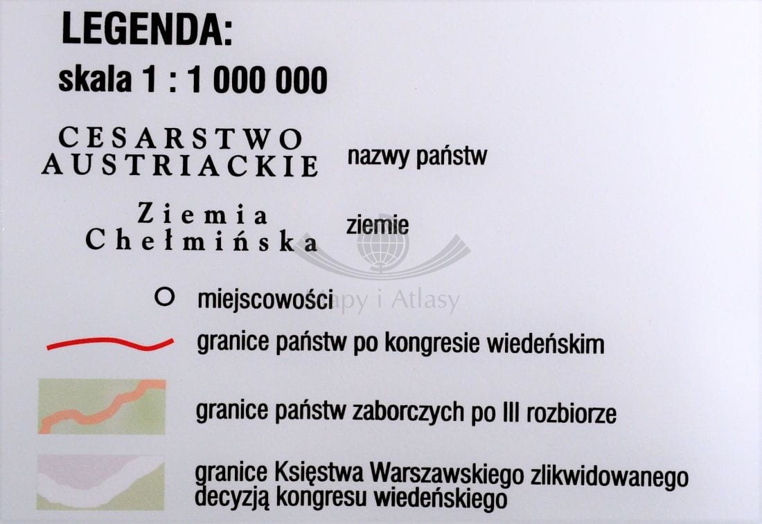 Szkolna mapa ścienna przedstawiająca ziemie polskie pod zaborami po Kongresie Wiedeńskim w 1815 r.