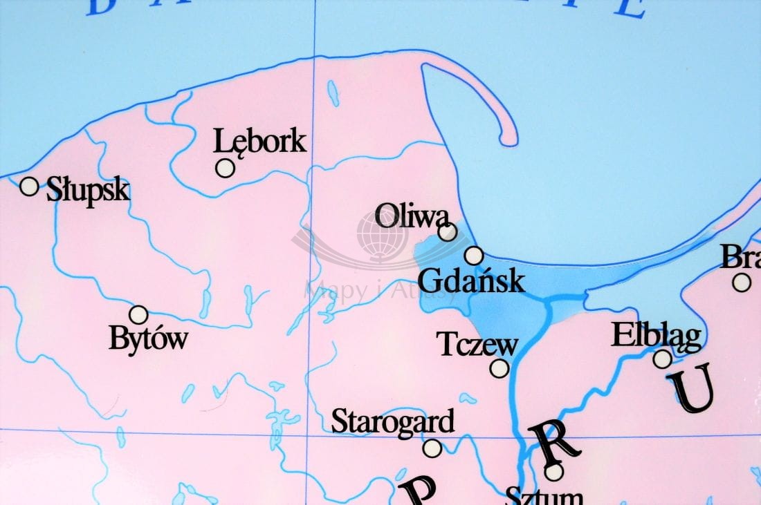 - oprawa w drewniane półwałki z zawieszeniem sznurkowym (mapa gotowa do powieszenia).
