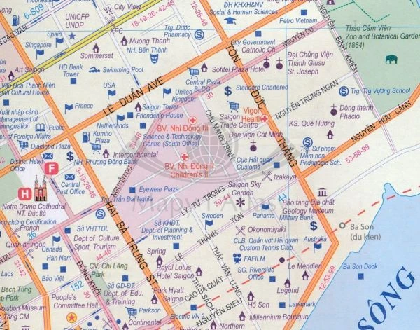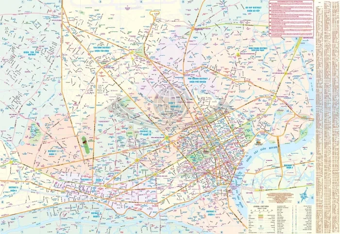 Składany plan miasta Ho Chi Minh w skali 1:1 000 oraz południowej części Wietnam w skali 1:920 000 wydawnictwa ITMB.