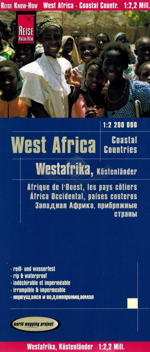Składana, dwustronna, wodoodporna mapa samochodowo-turystyczna Afryki zachodniej w skali 1:2 200 000 wydawnictwa Reise Know-How.