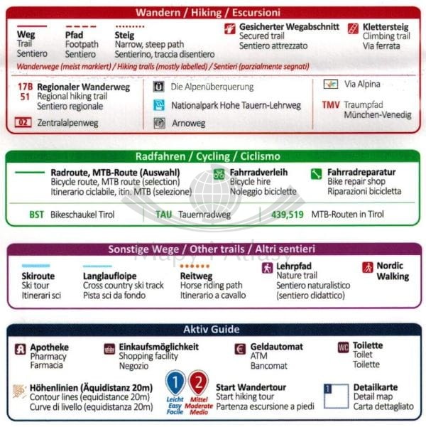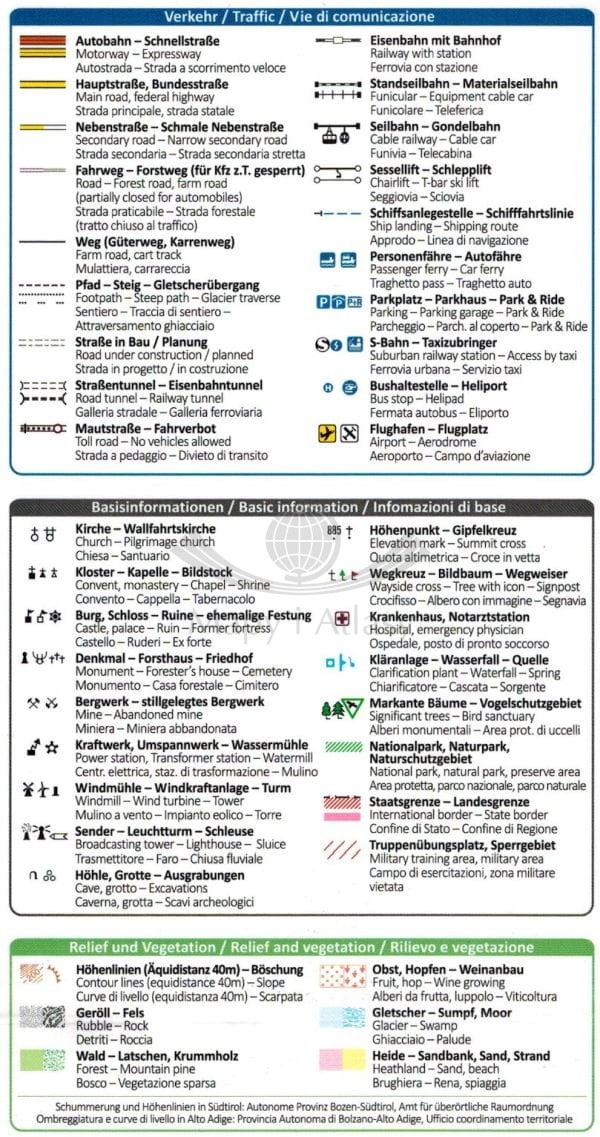 Legenda w języku: angielskim, niemieckim oraz włoskim.