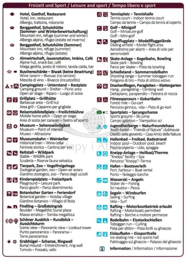 Do mapy dołączono 48-stronnicowy, kolorowy mini przewodnik w języku niemieckim. Przewodnik zawiera zdjęcia i opisy ciekawych miejsc wartych zwiedzenia oraz propozycje wycieczek.