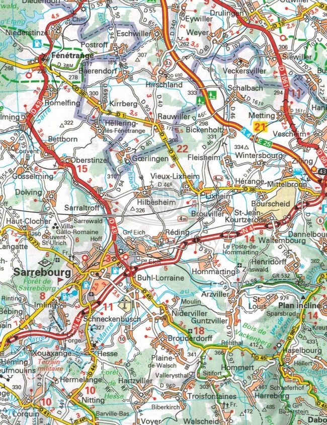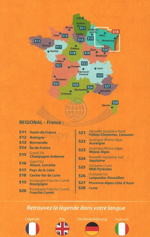 Składana, dwustronna mapa samochodowo-turystyczna Alzacji i Lotaryngii w skali 1:200 000 wydawnictwa Michelin.