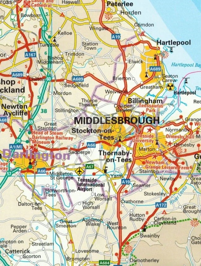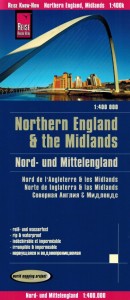 Składana, dwustronna, wodoodporna mapa samochodowo-turystyczna Anglii północnej i środkowej w skali 1:400 000 wydawnictwa Reise Know-How.