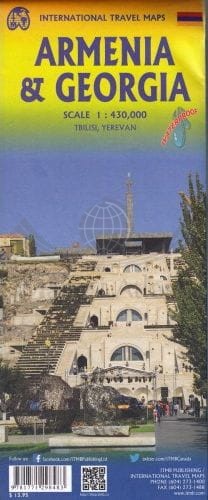 Składana, wodoodporna mapa samochodowo-turystyczna Gruzji oraz Armenii w skali 1:430 000. Legenda w języku angielskim. Publikacja zawiera indeks miejscowości, plan miasta Tbilisi w skali 1:20 000 oraz plan Erewania w skali 1:34 000.