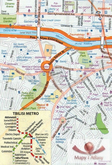 Składana, wodoodporna mapa samochodowo-turystyczna Gruzji oraz Armenii w skali 1:430 000. Legenda w języku angielskim. Publikacja zawiera indeks miejscowości, plan miasta Tbilisi w skali 1:24 000 oraz plan Erewania w skali 1:34 000.