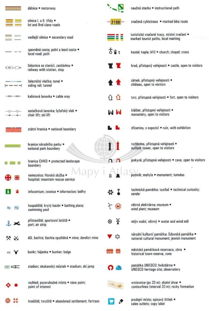 Legenda w języku czeskim i angielskim.