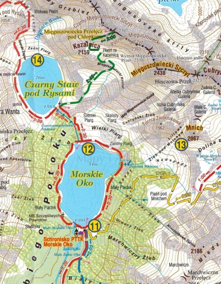 Na mapie zawarto aktualny przebieg szlaków wraz z czasami przejść. Idealna dla osób wybierających się na wycieczkę z Palenicy Białczańskiej.