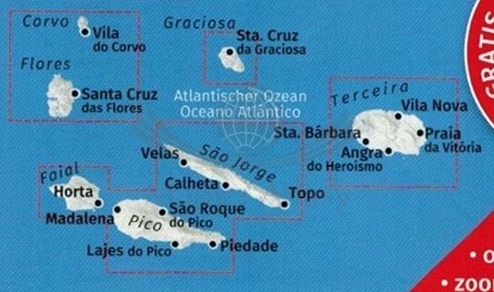 - wyspy: Faial, Pico, Corvo, Terceira, Flores, Graciosa, Santa Maria