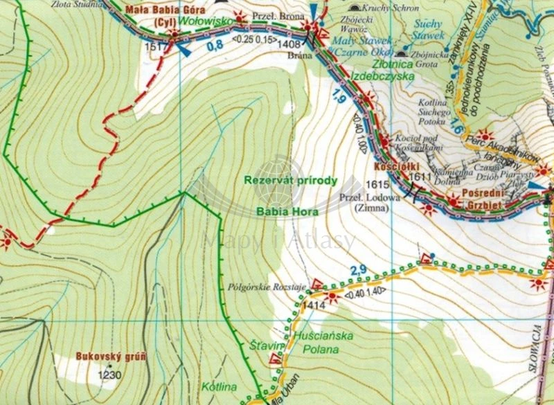 - długości szlaków pieszych w kilometrach i czasy przejść,