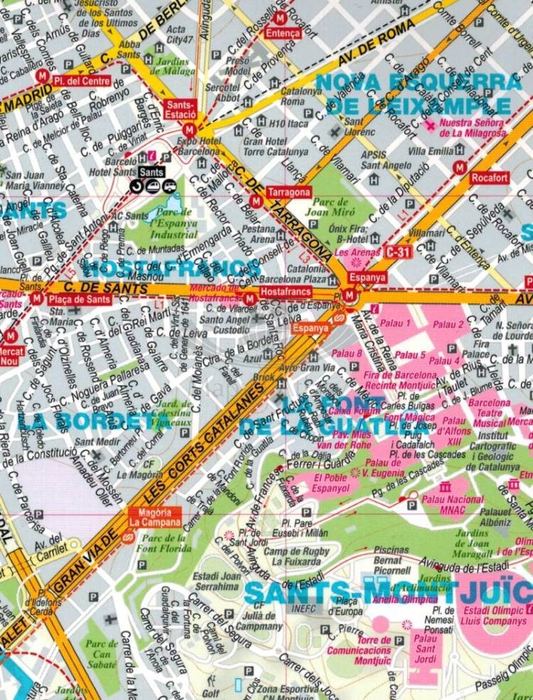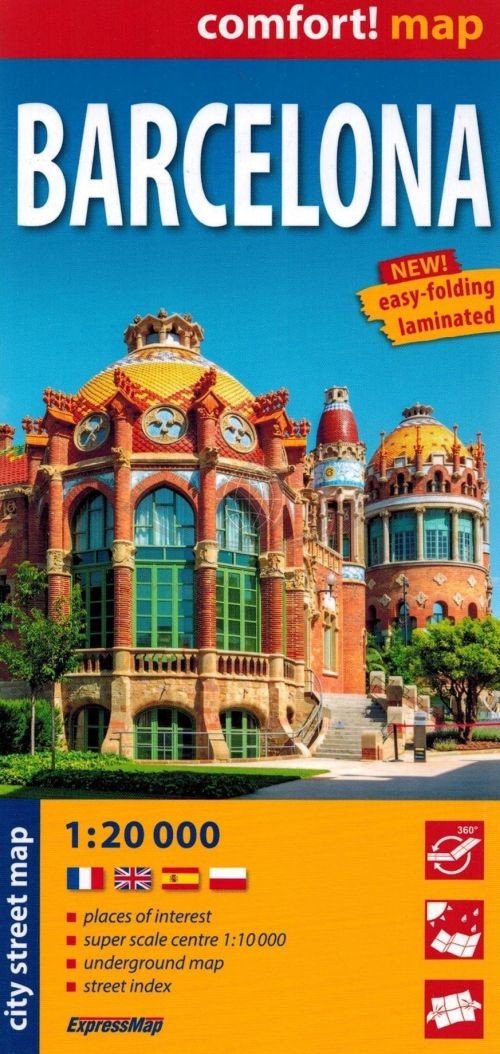 Składany, laminowany plan miasta Barcelony w skali 1:20 000 wydawnictwa ExpressMap.