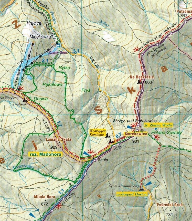Na mapie zaznaczono m.in.:
