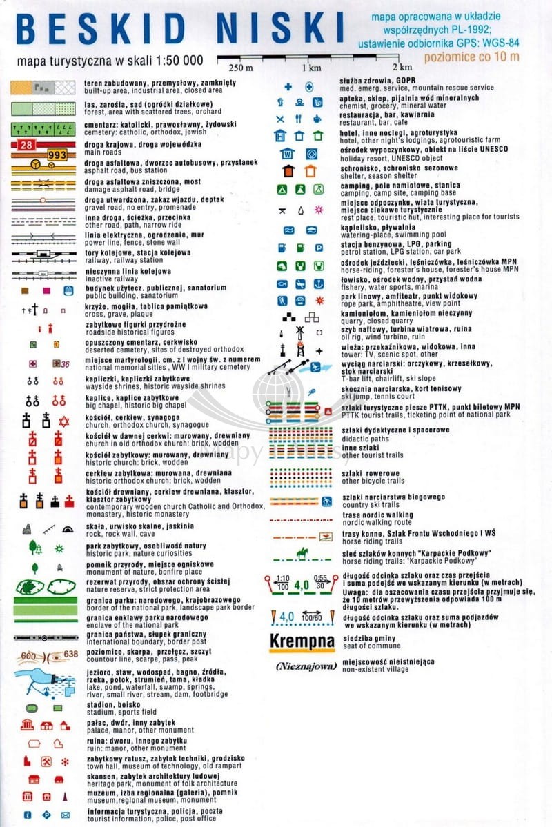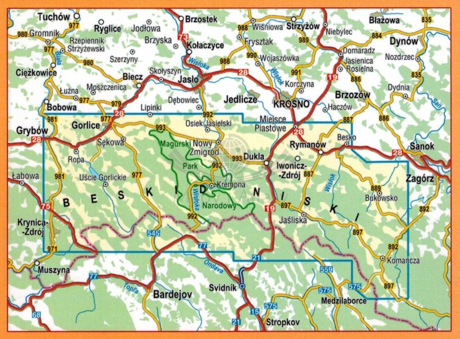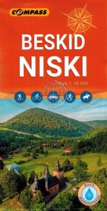 Składana, laminowana mapa turystyczna Beskidu Niskiego w skali 1:50 000 wydawnictwa Compass.