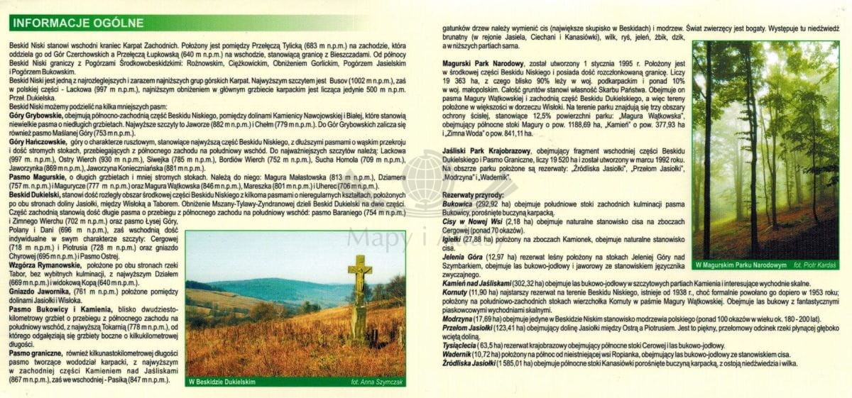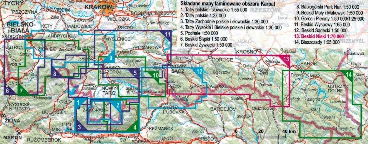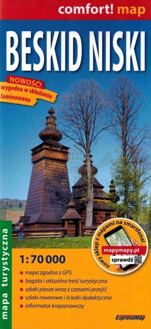 Składana, laminowana mapa Beskidu Niskiego w skali 1: 70 000 wydawnictwa ExpressMap.