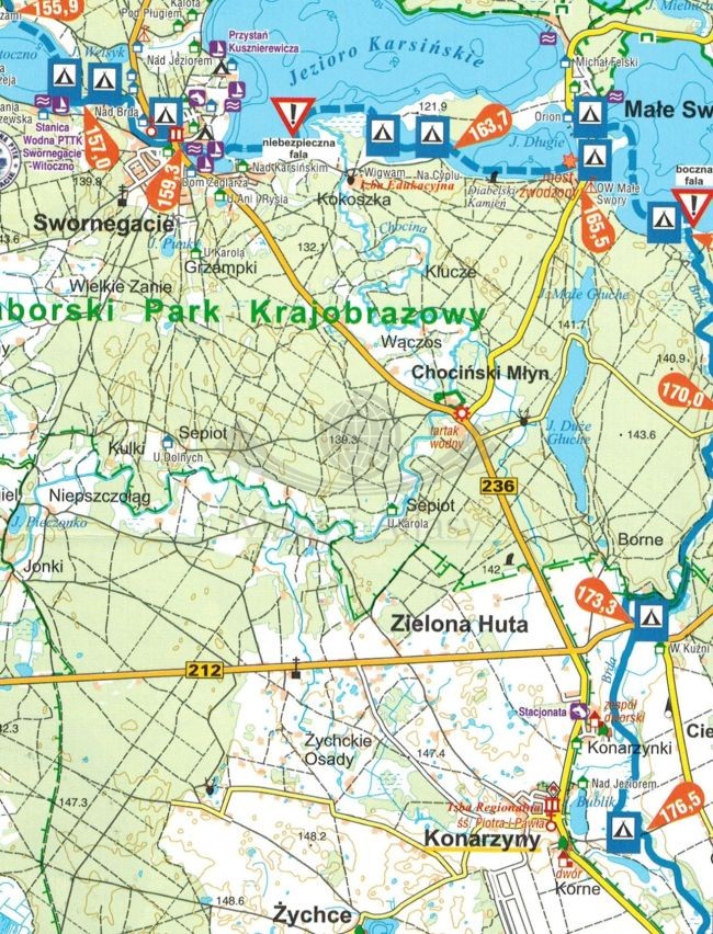 - orientacyjny przebieg szlaku kajakowego Brdy na jeziorach,