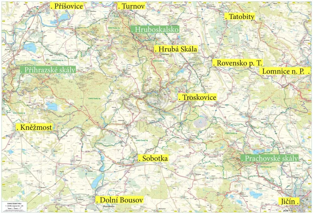 Składana, dwustronna mapa turystyczna Czeskiego Raju w skali 1:25 000, czeskiego wydawnictwa Geodezie On Line.