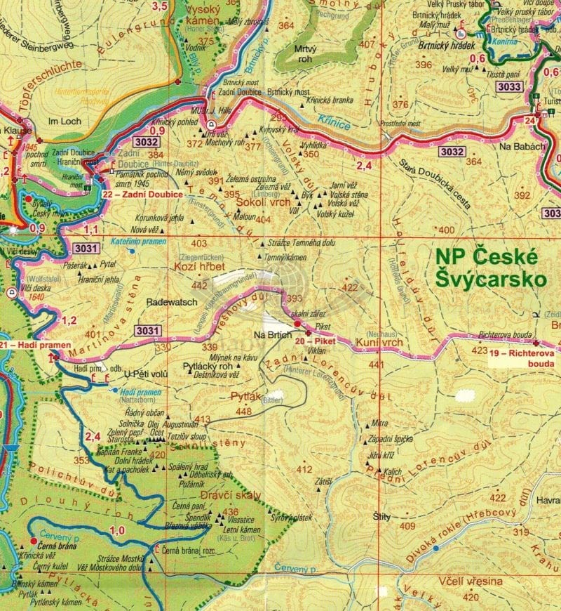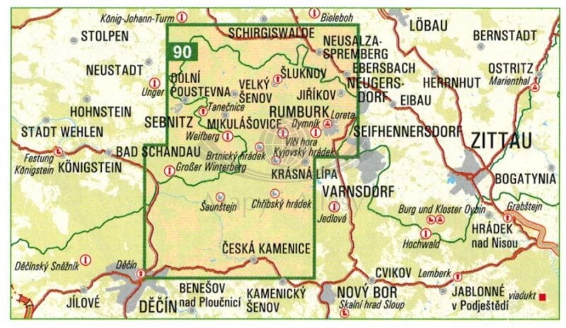 Obejmuje Czeską Szwajcarię, a także Obszar Chronionego Krajobrazu Łabskie Piaskowce oraz zachodnią część Gór Łużyckich. Zasięg mapy to pogranicze czesko-niemieckie ze Steinigtwolmsdorf i Oppach na północy, Ebersbach-Neugersdorf i Krasna Lipa wraz z Górami Łużyckimi na wschodzie, Ceska Kamenice i część Decina na południu oraz Sebnitz i rzeka Łaba na zachodzie.