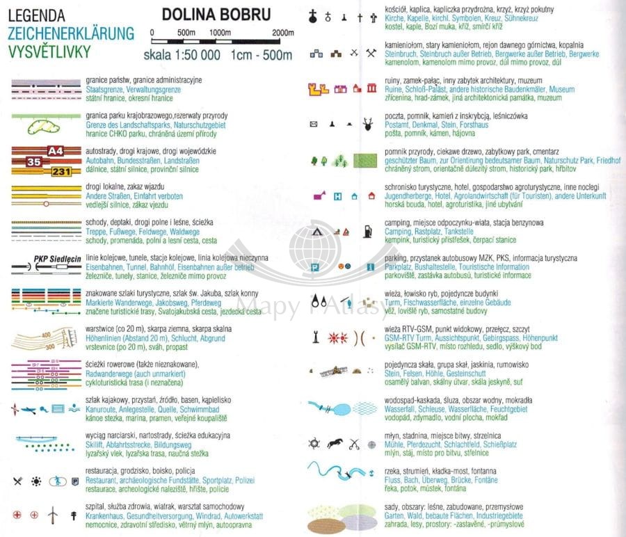 Składana mapa turystyczna Doliny Bobru w skali 1:50 000 wydawnictwa Galiloes, obejmująca obszar od Jeleniej Góry do Bolesławca.