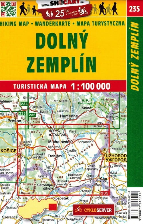 Składana, jednostronna mapa turystyczna Dolnego Zemplina w skali 1:100 000, czeskiego wydawnictwa Shocart. Zasięg mapy to: Vranov nad Topl'ou na północy, Uzhorod na wschodzie, Satoraljaujhely na południu oraz Gonc i Koszyce na zachodzie.