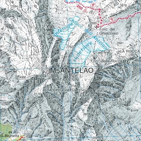 Mapa obejmuje m.in. szczyty: Civetta, Moiazza, Pelmo, Talvena, Antelao.