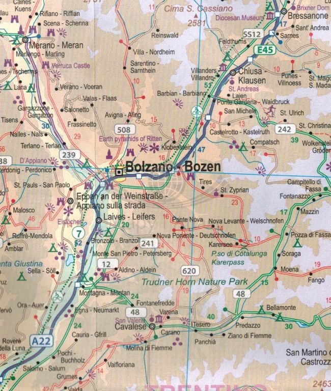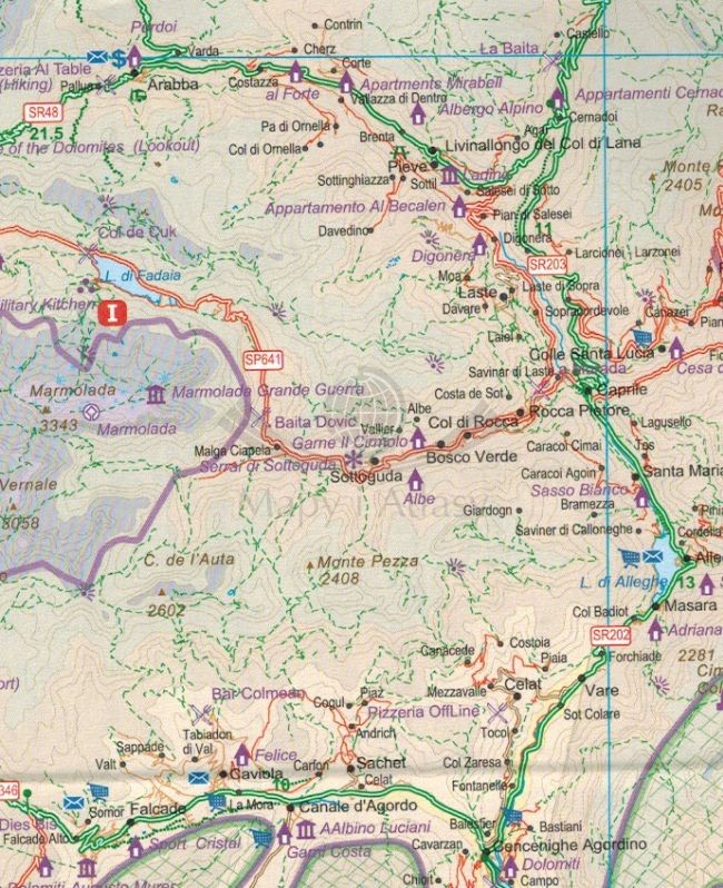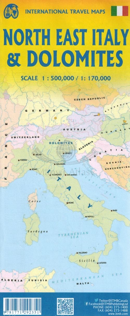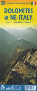 Mapa samochodowo-turystyczna Dolomitów w skali 1:170 000 oraz północno-wschodnich Włoch w skali 1:500 000 wydawnictwa ITMB.