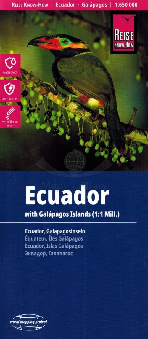 Składana, dwustronna, wodoodporna mapa samochodowo-turystyczna Ekwadoru i Wysp Galapagos w skali 1:650 000 wydawnictwa Reise Know-How.