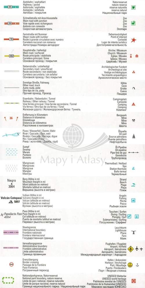 Legenda w języku: angielskim, francuskim, niemieckim, rosyjskim, hiszpańskim.
