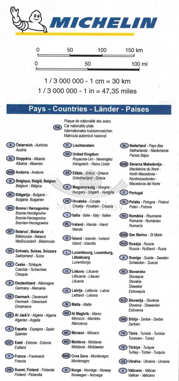 Składana, dwustronna mapa samochodowa Europy w skali 1:3 000 000 wydawnictwa Michelin.