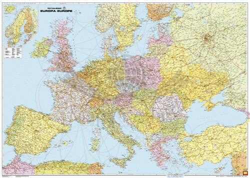Składana, jednostronna mapa samochodowo-polityczna Europy w skali 1:3 500 000 wydawnictwa Freytag&Berndt.