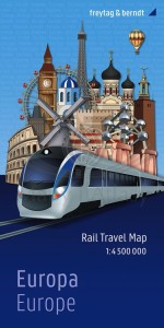 Składana mapa sieci kolejowej i promowej w Europie, w skali 1:4 500 000 wydawnictwa Freytag & Berndt