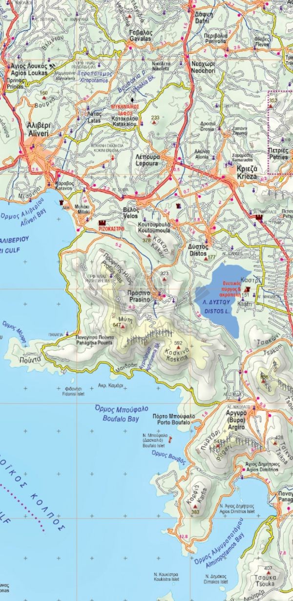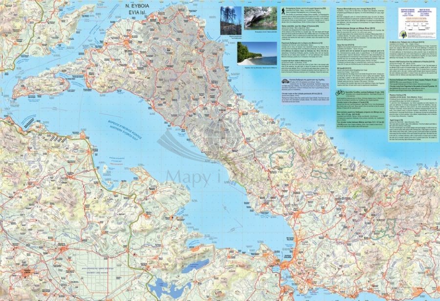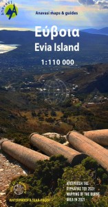 Składana, dwustronna, wodoodporna mapa samochodowo-turystyczna wyspy Euboea w skali 1:110 000 wydawnictwa Anavasi.