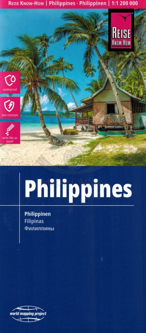 Składana, dwustronna, wodoodporna mapa samochodowo-turystyczna Filipin w skali 1:1 200 000 wydawnictwa Reise Know-How.