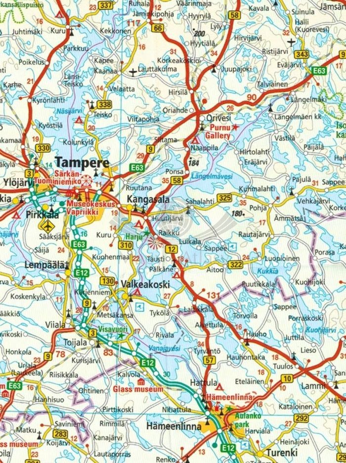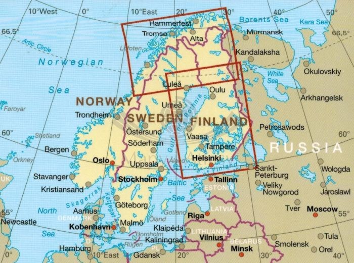 Składana, dwustronna, wodoodporna mapa samochodowo-turystyczna Finlandii i Północnej Skandynawii w skali 1:875 000.