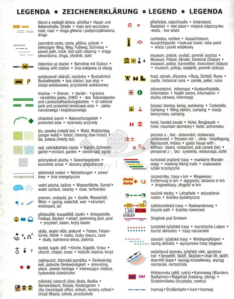 Legenda w języku: polskim, czeskim, angielskim oraz niemieckim.