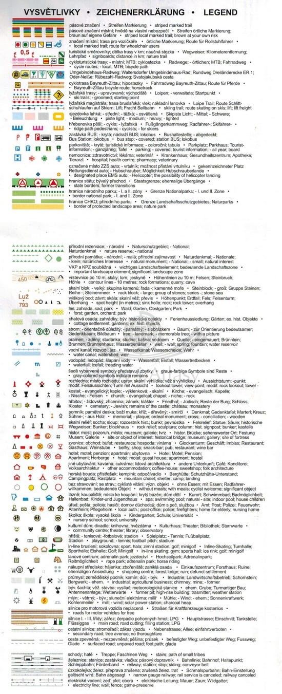 Legenda w języku: angielskim, niemieckim oraz czeskim.