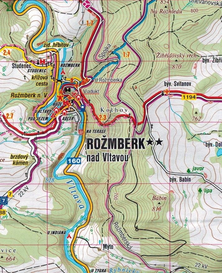 Zasięg mapy to: Rimov, Trhove Sviny, Olesnice i Halamky na północy, Ceske Velenice, Gmund, Wornharts i Wurmbrand na wschodzie, Gross-Gerungs, Langschlag i Windhaag na południu oraz Rozmberk nad Vltavou i Cesky Krumlov na zachodzie.