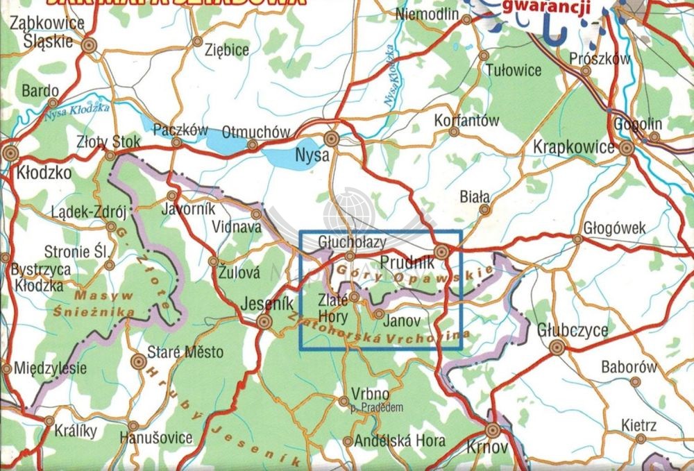 Składana, wodoodporna mapa turystyczna Gór Opawskich w skali 1:25 000 wydawnictwa Galileos.